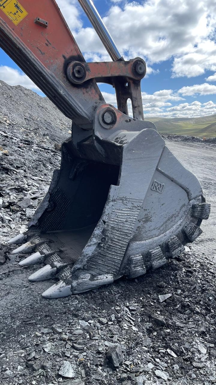 Скальный сверхусиленный ковш объемом 2,85 куб.м. Данный ковш применяется для добычи скальной руды и в данный момент установлен на экскаватор Hitachi ZX470.